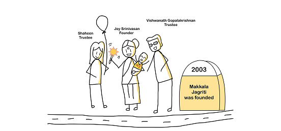 Makkala Jagriti was founded by Joy Srinivasan with a vision to provide equal educational opportunities for children from underserved communities in Bangalore.